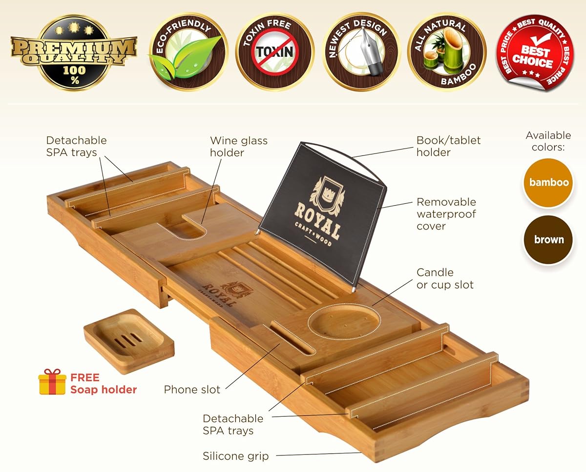 Royal craft wood luxury bamboo bathtub caddy tray. Bath trays are trending on google and pinterest this holiday season. Royal craft wood luxury bathtub tray. It comes equipped with holder for stemmed glass, phone, book or ipad; Being the best product in the list today, royal craft wood luxury bathtub comes with many great features that we adore.