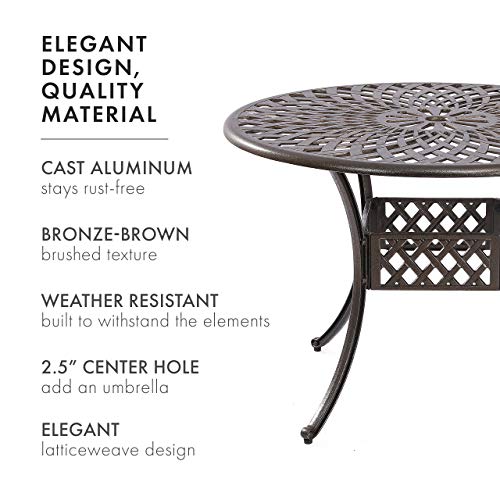 Outdoor dining table and chairs with umbrella hole.